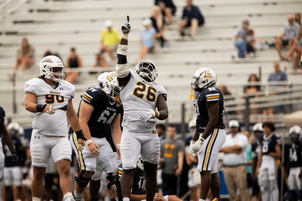 Sloppy errors from the offense contributed to their deficit. Quarterback Nate Maiers’ pass was intercepted on a potential scoring drive in the first quarter, and Greg Casimir’s field goal attempt in the second was blocked, preventing the Profs from taking the lead with a 7-7 tie. The run game also got off to a slow start, with the trio of Nunes Bukula IV, Bookman, and Mordecai Ford only rushing for 33 yards in the first half.