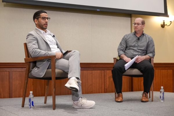 The first of the fireside chats was led by Dr. Lawrence Markowitz, a professor of political science at Rowan University, who sat down with Naik and explored how authoritarian regimes operate under the guise of democracy.